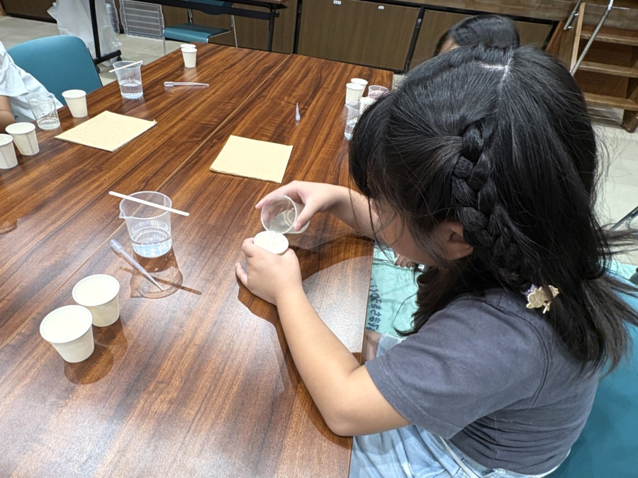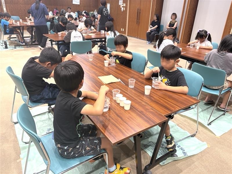 令和7年8月4日(月)松浦市立中央公民館にて出前授業を行いました。実施したテーマは「キラキラワームづくり」です。