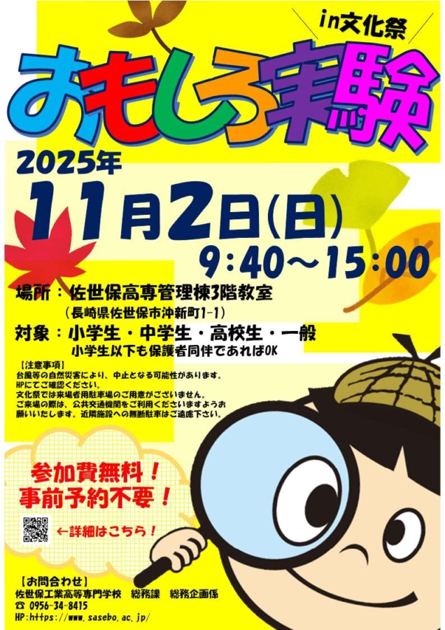 科学技術に興味がある人、ものづくりをしてみたい人はもちろん、高専がどういうところか気になっている方など未来の技術者を育てる高専の魅力を、ぜひ体感しにご来場ください!