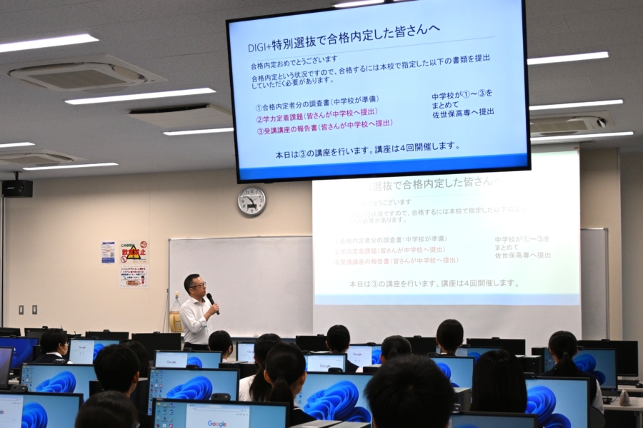 令和7年度から新たに設けられた入試制度『DIGI⁺特別選抜』の令和8年度合格内定者に対して、デジタル情報教育講座を行いました。