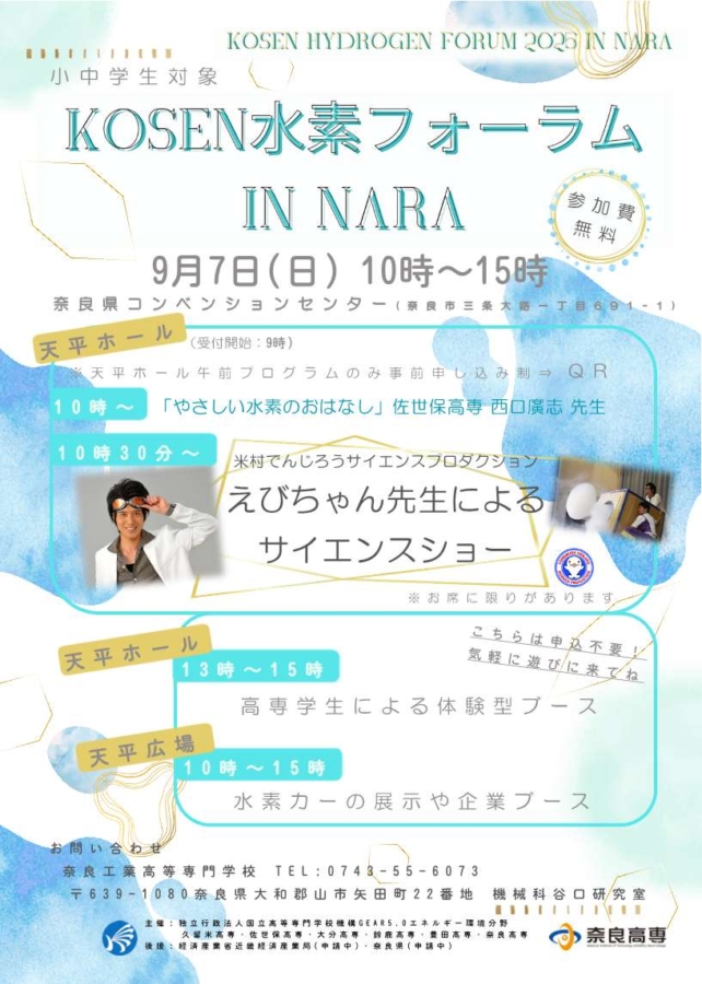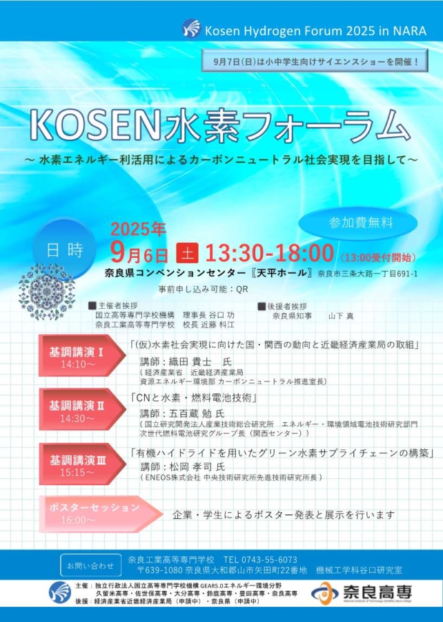 令和7年9月6日、7日の2日間にわたって「KOSEN水素フォーラム in NARA」が奈良コンベンションセンターにて開催されました。
