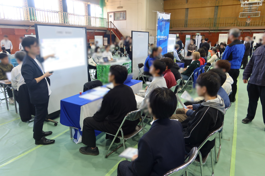 当日は各企業が自社の技術力や取り組み等、事業内容の魅力についてプレゼンテーションを行い、学生たちは熱心に耳を傾けていました。