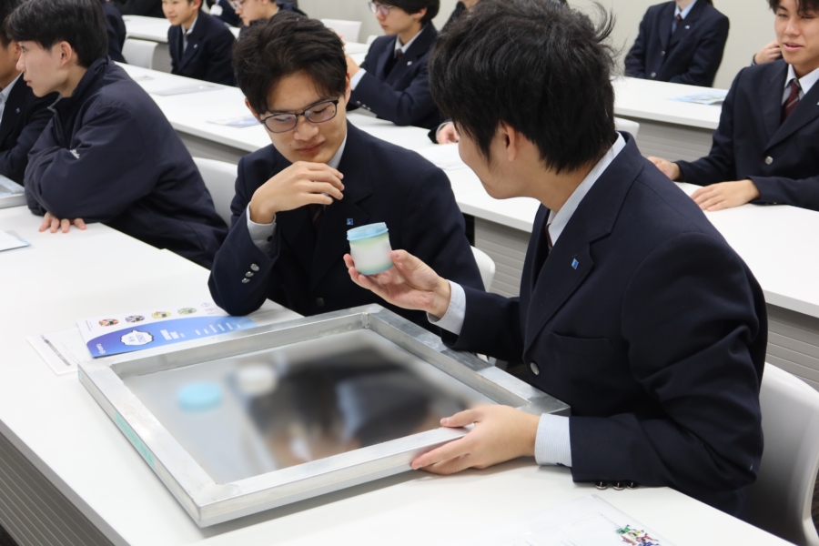 身近な商品に、部品等が数多く活用されていることや、モノづくりにおける工程管理や品質管理の重要性など、学生達も興味津々な様子で説明を受けておりました。