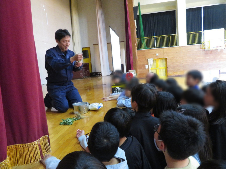 白南風小学校にて「自分の指のレプリカを作ろう・水を使ったマジック」をテーマに出前授業を行いました。