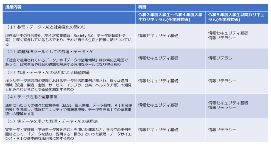 その成果として令和2年度から数理・データサイエンス・AIを強化した新カリキュラムを開始しました。
