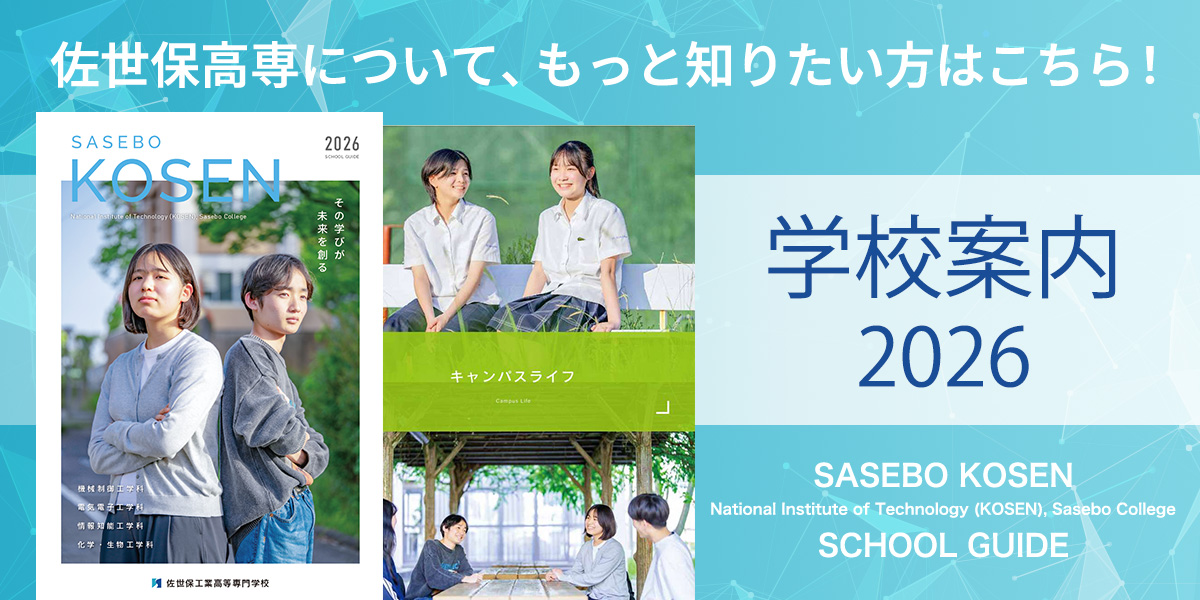 入試スケジュール 中学3年生 9月~2月に実施選抜の機会は3回! 推薦・学力選抜に加えて、佐世保高専独自の『DIGI⁺特別選抜』を実施します。 説明会・イベントスケジュール 小学生~中学生向け実験を体験できるイベントや説明会、そして8月には全学科の学びを体験できる一日体験入学を開催! 入試関連フライヤー「佐世保高専へようこそ」 入試関連情報(募集要項・過去問・志願状況等) 入試に関するお知らせ 2025.10.29 「女子中高生のための今知りたい!理系進学で広がる未来 リケフェス2025」が開催されました! 2025.10.08 令和8年度 DIGI⁺特別選抜第二次選考合格内定者発表 2025.10.07 令和7年度一日体験入学を実施しました 2025.10.06 自立応援入学支援金について(遠方から本校への入学を希望される皆様へ) 2025.09.26 令和8年度学生募集要項・WEB出願について 本科入試情報 専攻科入試情報 編入学入試情報 学校案内2026 中学生の皆さんに向けた学校案内パンフレットです。 中学生の皆さんへ 高専ってどんなことを学ぶの? 寮生活はどんな感じ? 中学生の皆さんが気になる、佐世保高専の魅力やポイントをご紹介します! 在校生インタビュー 佐世保高専で5年間を過ごした在校生に、佐世保高専や学科を選んだ理由、高専での学生生活や卒業後の進路について、そして高専を目指す中学生へのメッセージをインタビューしました! 高専女子Life 男子学生のイメージが強い高専ですが、女子も男子と一緒にものづくりの技術者を目指し、学んでいます。勉強だけではない、楽しい高専女子Lifeを覗いてみませんか? 入学・入試に関する各種情報 入試関連情報 令和8年度学生募集要項・WEB出願 編入学生入試概要・募集要項 佐世保高専の教育制度の概要、各学科の入学定員・学科紹介 検定料・入学料・授業料 入学料免除・徴収猶予制度 学校案内パンフレット等 入学者選抜における追試験について 自立応援入学支援金 学寮「西雲寮」 説明会・イベント情報 高専説明会 一日体験入学 高校説明会 入試懇談会 入学者選抜に関する合理的配慮の提供に関して 入学者選抜に関する合理的配慮の提供に関して