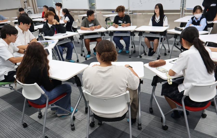 - お互いの学校や趣味について質問した後、多文化共生に関するディスカッション