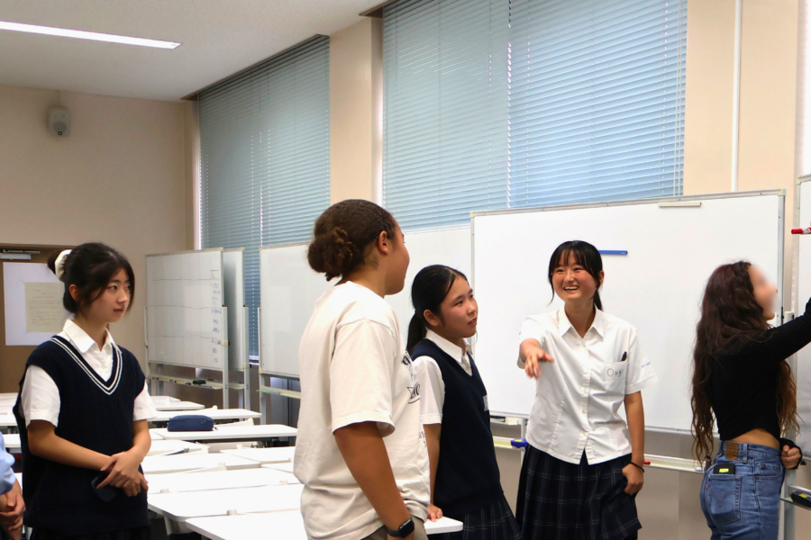 令和7年10月16日(木)、3年生の授業グローカルリテラシー・塚崎ゼミの活動の一環として、米軍基地内のE. J. King Middle High Schoolの生徒10名を本校ICT5教室にお招きし、交流会を実施しました。